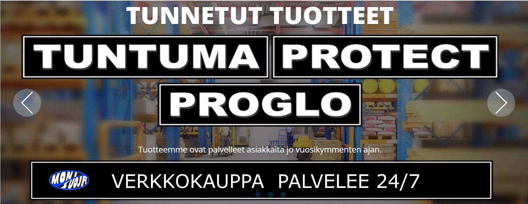 Monisuoja Oy on kotimainen, vuonna 2005 perustettu verkkokauppa yritys, joka on erikoistunut työkäsineiden, työvaatteiden, turvajalkineiden sekä muiden suojaimien verkkokauppaan ja tukkukauppaan. Toimistomme sijaitsee Kemissä ja maahantuojan keskusvarasto sijaitsee Pohjanmaalla. Verkkokauppa www.monisuoja.fi joka palvelee asiakkaitamme 24/7. Vahvuuksiamme ovat laaja ja kattava valikoima sekä asiantunteva ja hyvä palvelu. Maahantuojan varaston ansiosta voimme tarjota asiakkaillemme laajan tuotevalikoiman, kilpailukykyisen hintatason ja hyvän toimitusvarmuuden.